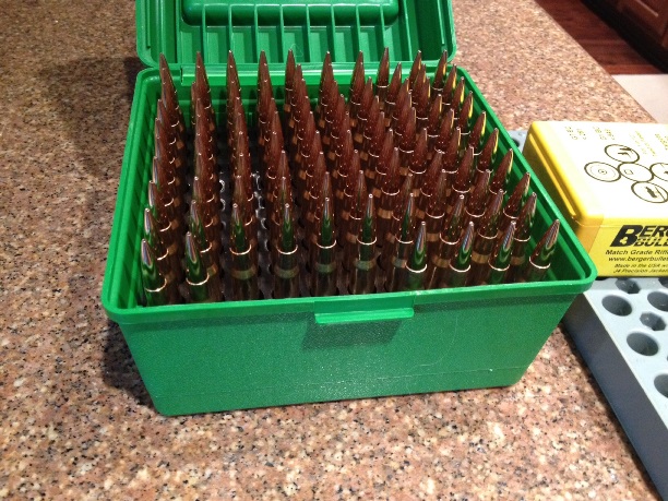 100 rounds, 30-06, Norma brass, Fed Match LRP, 55.0 gr. IMR4350, 185 Berger Target VLD.