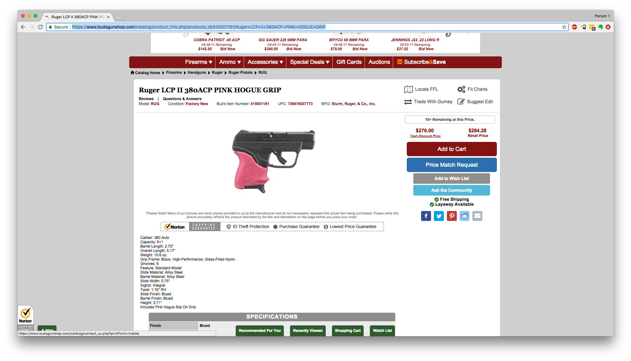 2 mags were run through it before She decided it wasn't for her. Will come with original box + accoutrements as well as a pink rubber Hogue overgrip. If pink isn't your thing it's very removable.