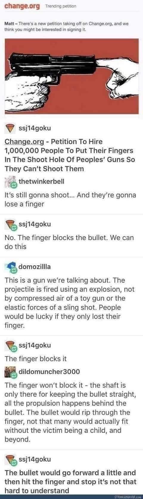 How a liberals think a bullet can be stopped at change.org